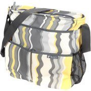 The California Innovations Jordan Baby Tote Diaper Bag has a main compartment with pop-open access. It has a thermal bottle compartment with zippered closure, two wet pockets and two elasticized, lined pockets.