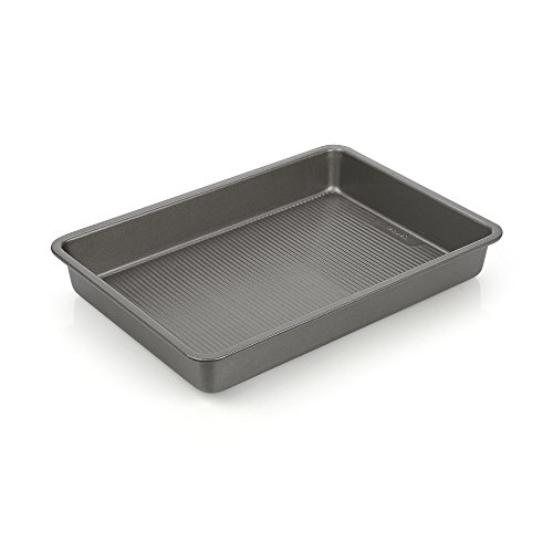 - Oblong Cake Pan measures 13 in x 9 in x 2 in deep