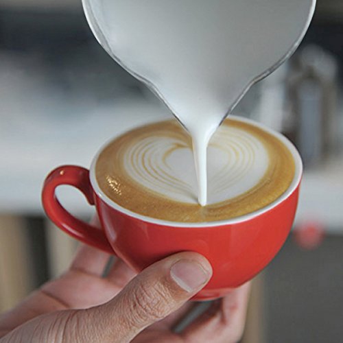 - ★STURDY STAINLESS STEEL: Made with 100% non-toxic food grade quality stainless steel that’s rustproof. Because we use high quality material to make this it won’t fall apart like the cheaper ones or become rusty. The handle makes it easy to maneuver the pitcher around when frothing milk.