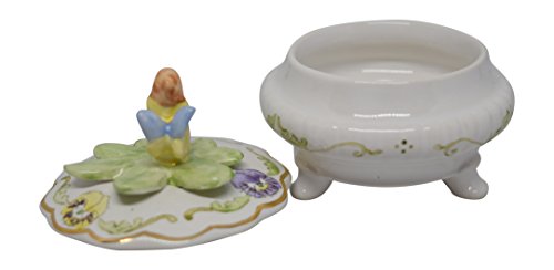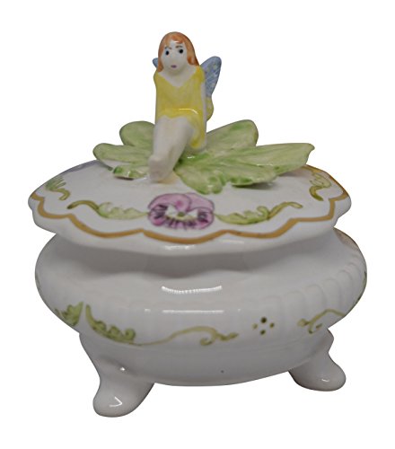 Fairy Sitting On Handpainted Ceramic Tooth Fairy Box (White Circular Box)