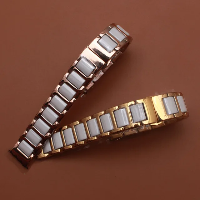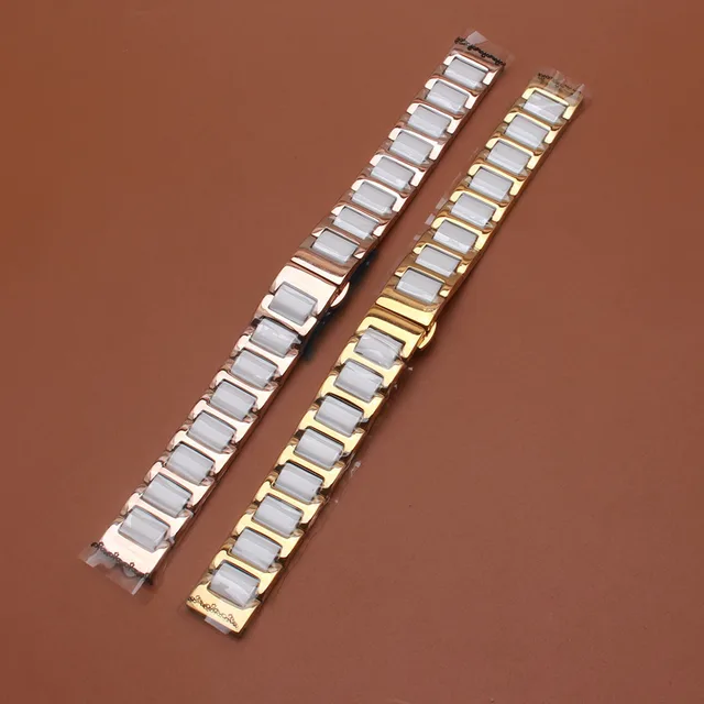 | [해외] 시계 화이트 세라믹 광택 스테인레스 스틸 골드 Rosegold 높은 품질의 시계 밴드 스트랩 팔찌 14 미리메터 16 미리메터 18 20 22 미리메터 |