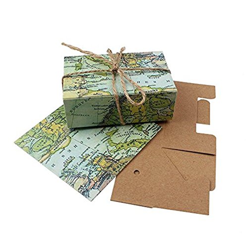 Astra Gourmet 50Pcs "Around the World" Map Favor Boxes Travel Theme, Wedding Party Decoration Vintage Kraft Paper Candy Box Gift Supplies for Travel Themed Shower
