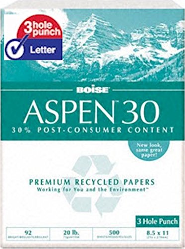 Aspen 30 3-Hole Punch 30% Recycled Copy Fax Laser Inkjet Printer Paper, 8 1/2 x 11 Inch Letter Size, Punched, 20 lb. Density, 92 Bright White, Acid Free, Ream, 500 Total Sheets (054901-P)