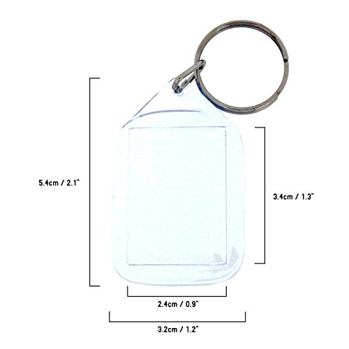 DETAILS AND MEASUREMENTS - Each keyring is made from high quality durable acrylic plastic with metal rings which enhances photographs. The key chains measure 5.4cm (2.1 inch) x 3.2cm (1.2 inch) and holds photos measuring 3.4cm (1.3 inch) x 2.4cm (0.9 inch).