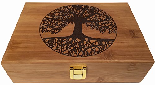 - ►ENGRAVED TREE OF LIFE DESIGN - The decorative box and Tree of Life design is a Blake & Lake Home Decor exclusive design. You will not find this box anywhere else! Dimensions are 8.5” long, 6” wide, and 2.75” tall. This Bamboo Tree of Life box is about the size of a cigar box with thick walls.