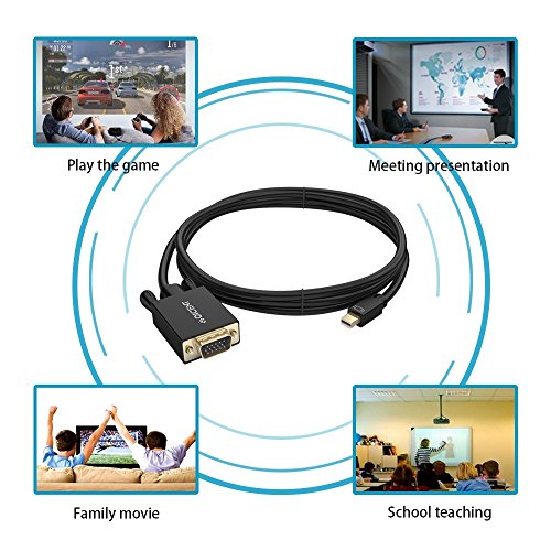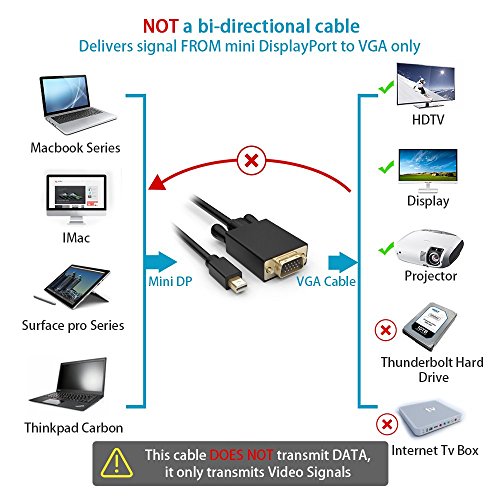Convenient cable for directly connecting a Mini DisplayPort (Mini DP or mDP)/Thunderbolt 2 port compatible computer to an HDTV, monitor, or projector with VGA
