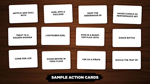 Need a change from Cards Against Humanity? Spank the Yeti is a hilarious new irreverent party game with a fresh play mechanic. Would you dumpster hump a robot, eat the dingleberries of a coked-out unicorn, and joust Tarzan? Or, maybe you would hump the unicorn, joust the robot, and snack on Tarzan's dingleberries. Hmm.... Each round, one player pairs up three Action Cards with three Object Cards, and the other players try to correctly predict his or her answers. You don't really know your friends until you know whose dingleberries they'd eat. Added bonus: The game box glows in the dark! Contents: 436 Cards. 1 Rule Sheet From Galactic Sneeze, the makers of Schmovie: The Hilarious Game of Made-Up Movies, for ages 8+/Family.Feature