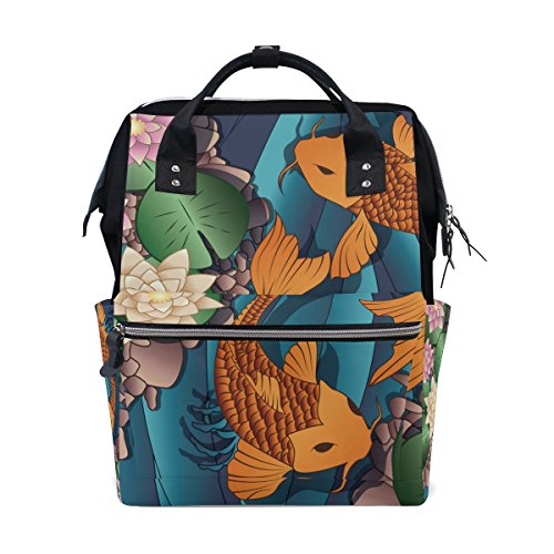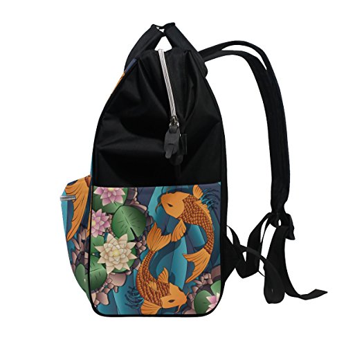 (super3Dprinted)/Accessories/Luggage, Bags Travel/DIRECT FROM USA/Japanese Koi Fish Mommy Bags Mother bag Travel Backpack Diaper Bag Daypack Nappy Bags for Baby Care