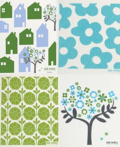 Swedish Dishcloth, Set of 4 Cool Turquoise & Green (GB) Designs
