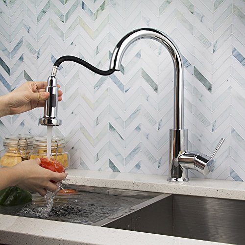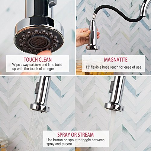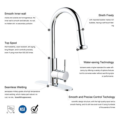 BOHARERS Kitchen Sink Faucets with Sprayer Stainless Steel Single Handle Spot Resist, Polished Chrome