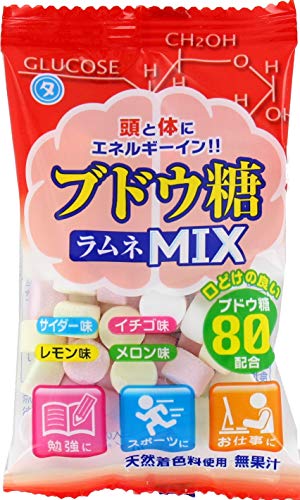 原材料:ブドウ糖、コーンスターチ(遺伝子組み換えでない)、澱粉分解物/酸味料、香料、着色料(アントシアニン、クチナシ、スピルリナ青)