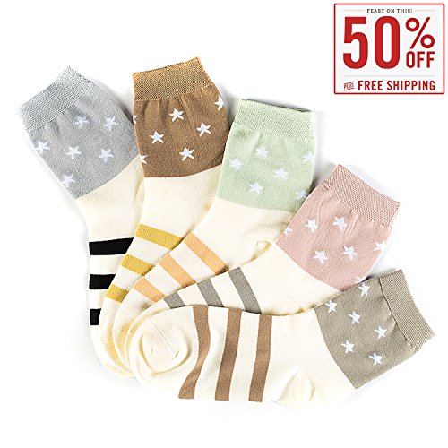 -. Feature : MATERIAL: 80% Cotton, 20% Polyester. / STRETCHY SIZE: Fits shoe size, women 6-11. / PACKAGE INCLUDE: 5 pairs of socks (mixed colors), 5 styles to choose / SOFT AND COMFORTABLE: Soft and gentle care for skin, feel comfortable all the day. / FASHION DESIGN: Unique design meets the double effect of fashion and comfort.