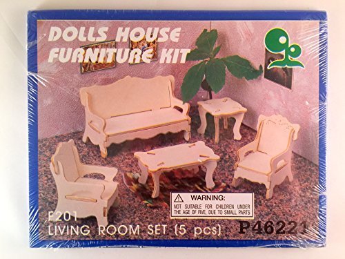 DOLL HOUSE FURNITURE KIT - WOODEN - LIVING ROOM SET (5 PCS)