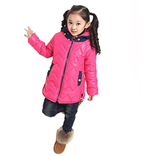 FakeFace Kids Girls Quilted Jacket Winter Warmer Padded Coat Hooded Long Hoodie Snowsuit