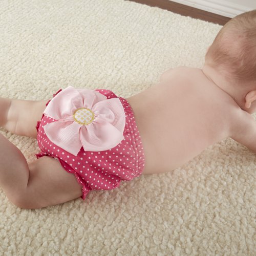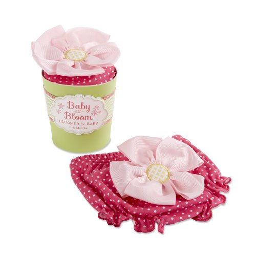 Only in baby aspen's blissful garden can you grow a tiny girl's gift as sweetly sassy as this hot-pink bloomer. Gift-ready, the charming pink-and-green "flower pot" holds a little bouquet for baby's bum.