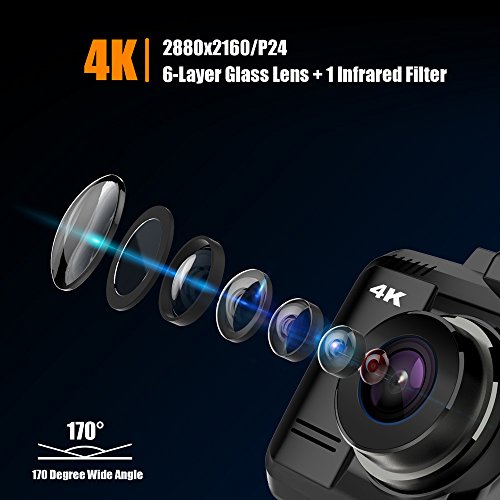 STERIO 4K 2880x2160/P24 Dash Cam with Wi-Fi, GPS, 170 Degree Ultra Wide Angle, 2.4" LCD Dashboard Camera with G-Sensor, WDR, Loop Recording, Night Vision, Parking Mode, Motion Detection