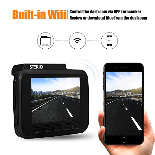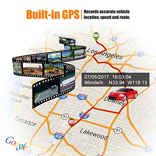 - △ Built-in Wi-Fi and GPS---Download ‘Lerccenker’ app and connect it with the built-in Wi-Fi, you can easily control the dash cam with your phone and download video and pictures from dash cam to your phone; Turn on a video file with a DVR player and then you can check the exact wheel path on Google map. You can download the DVR player through the links mentioned in our user guide.