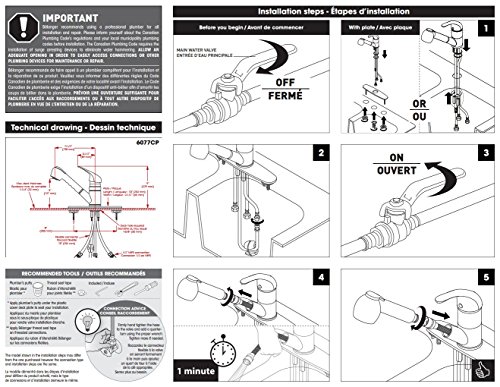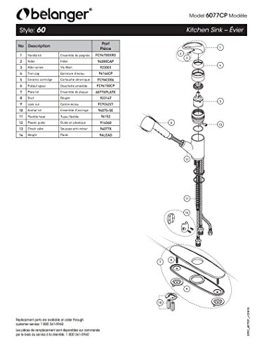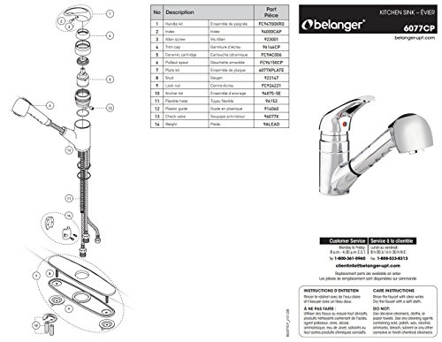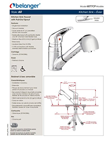 Belanger 6077CP Kitchen Sink Faucet with Pull-Out Spout and 1 Handle, Polished Chrome