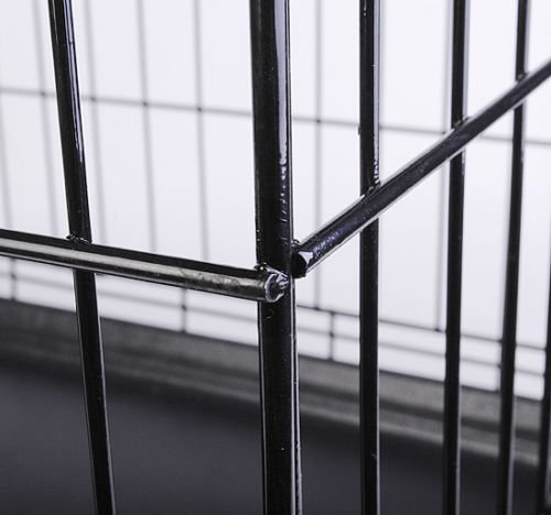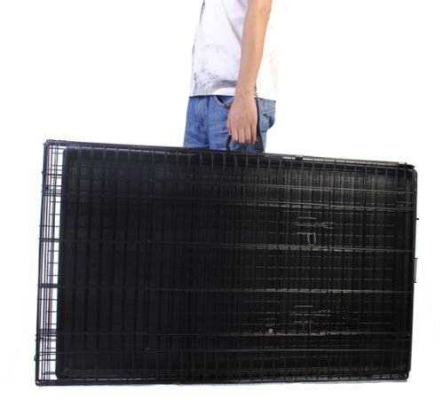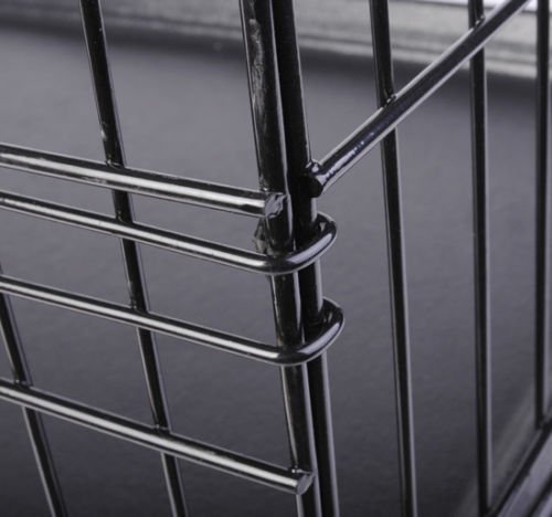 -. Feature : Package Include: 1 * Pet Crate Dog Cage / Material: Strong Wire. Color: Black. Type: Two Doors Without Divider Size: 30"(L) X 20"(W) X 22"(H) / Wire Diameter: Outline Border: 0.18"; Vertical Wire: 0.11"; Widthways Wire: 0.18" 2 Easy To Open Doors / Constructed Of Heavy Duty Steel Wires, Very Durable Rounded Edges - Safer For Puppy Black Epoxy Coating, Waterproof And Anti-Rust Folding Suitcase Style And Fully Assembled Design Allows For Portability And Easy Storage / Set-Up And Fold-Down In Seconds, No Tools Needed Double Door Design Gives Added Flexibility For The Placement Of The Cage Each Door Is Equipped With Secure And Simple Slide Bolt Latches Tough Slide-Out ABS Tray For Easy Cleaning Plastic Carry Handle For Easy Transportation