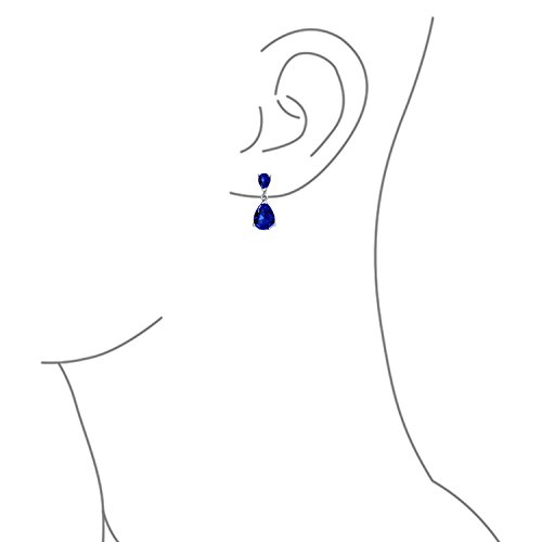 September babies can add glam to their evening look with these breathtaking, sterling silver 1in stud backed, dangle earrings. With a lovely double teardrop design made of glistening simulated sapphire CZ's.