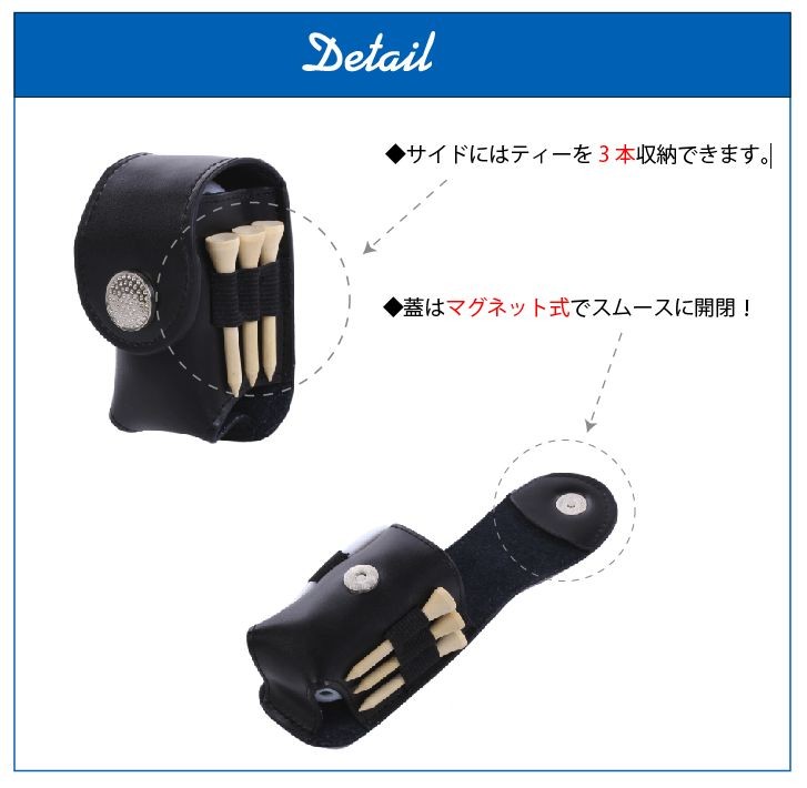 ボール2個、ティー3本、グリーンフォーク1本を収納することができます。
