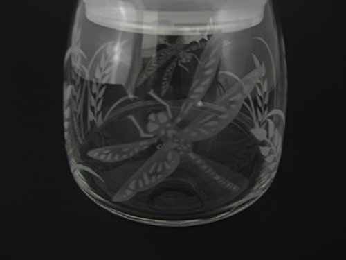 Hand Etched Vibe Storage Jar Sandblasted (Sand Carved) Glass Handmade USA Custom (12.25 Ounce (362ml), Dragonfly Grass)