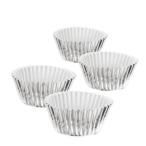 Cupcake Liners 180-Piece - Bulk Decorative Silver Metallic Foil Paper Cupcake and Muffin Baking Cups for Birthday