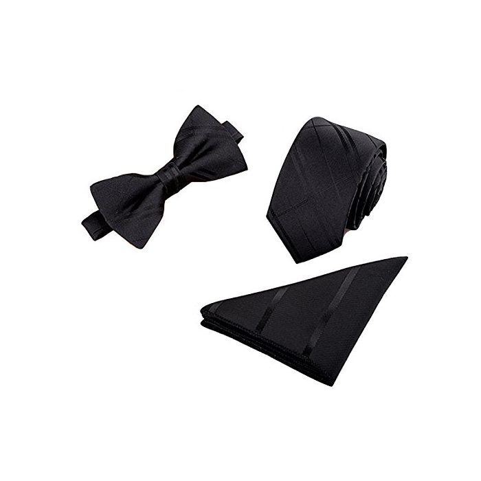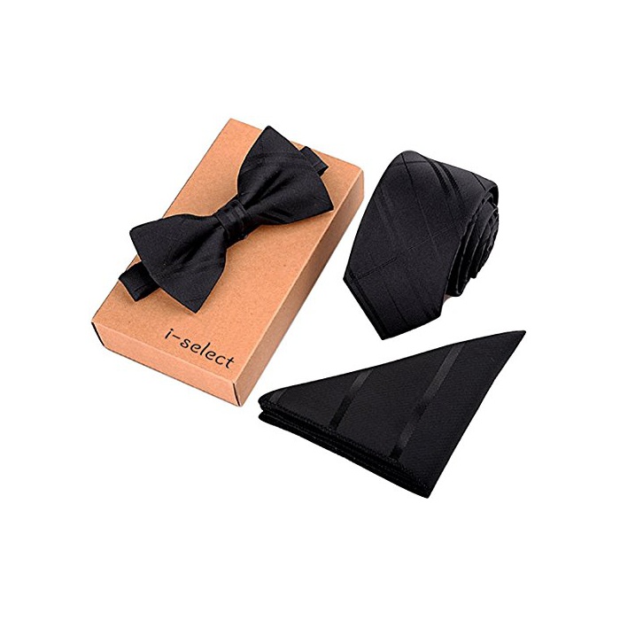 원본상품명: i-select ビジネス 同柄 ネクタイ 蝶ネクタイ ポケットチフ 3点セット フォマル 結婚式 パティ プレゼント 父の日 (ブラックソリッド)