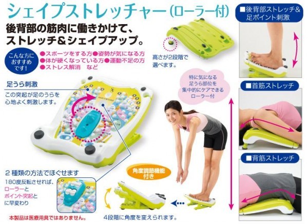 | スポーツをする方、姿勢が気になる方、体が硬いと感じられている方、運動不足の方、ストレスを感じていらっしゃる方に最適なお手軽ストレッチ機器。ローラーを180度反転させれば足裏のコロコロマッサージもできます。日本製。 |