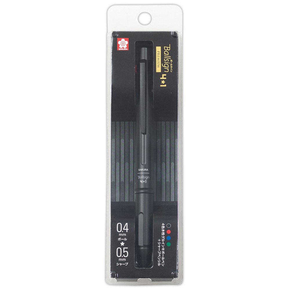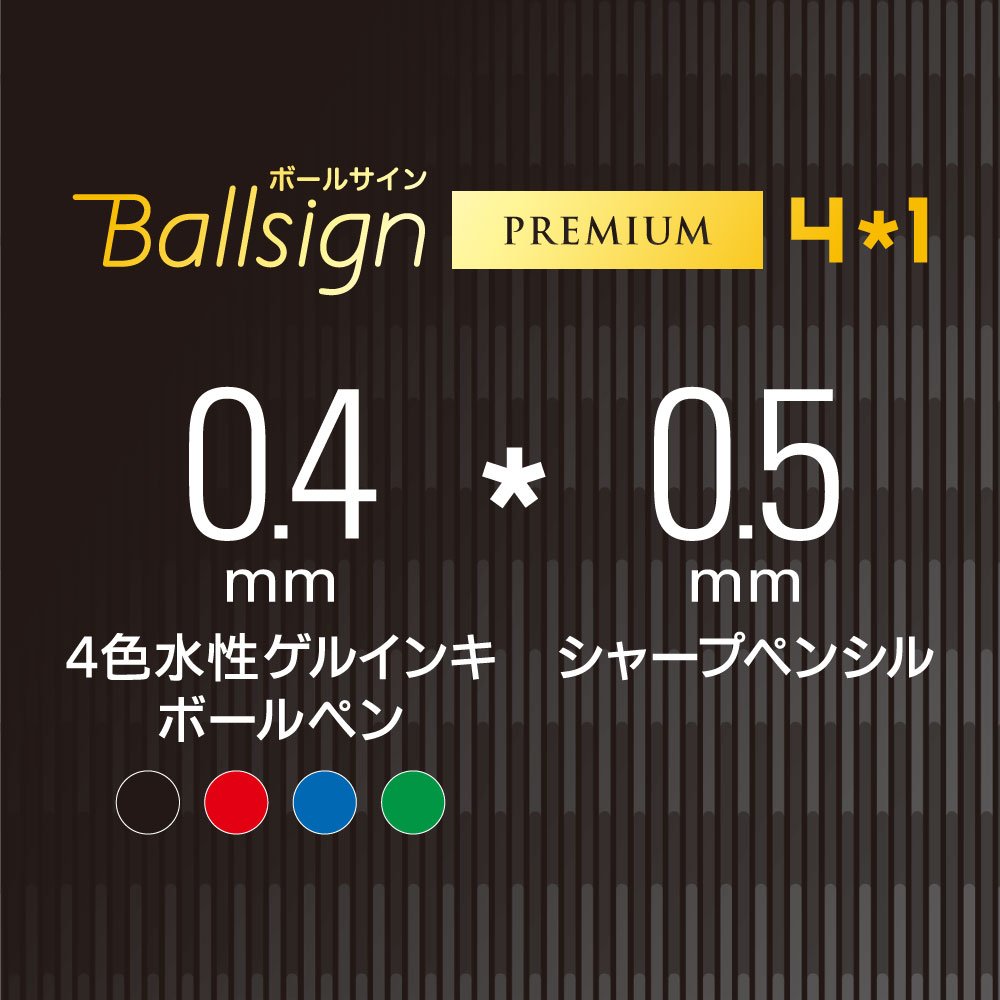 Extremely fine 0.4 mm × 4 colors (black, red, blue, green) + 0.5 mm multi function pen with sharpness.