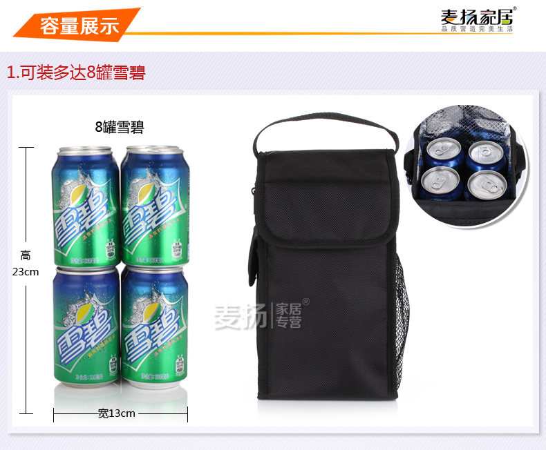 也适合装放直径15cm以内的各式饭盒或杂物,比如拎到超市买雪糕,可保证2小时不融化。