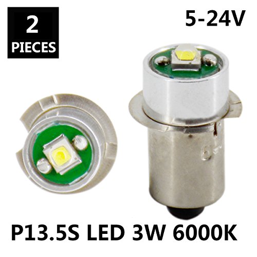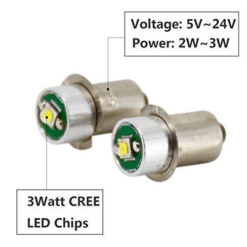 JESLED PR P13.5S 3W 247Lumen DC 5-24V 18 Volt CREE LED Upgrade Bulb Replacement For DEWALT Flashlight Torch Tooling Lantern Work Light Maglite LED Conversion Kit (2-Pack)