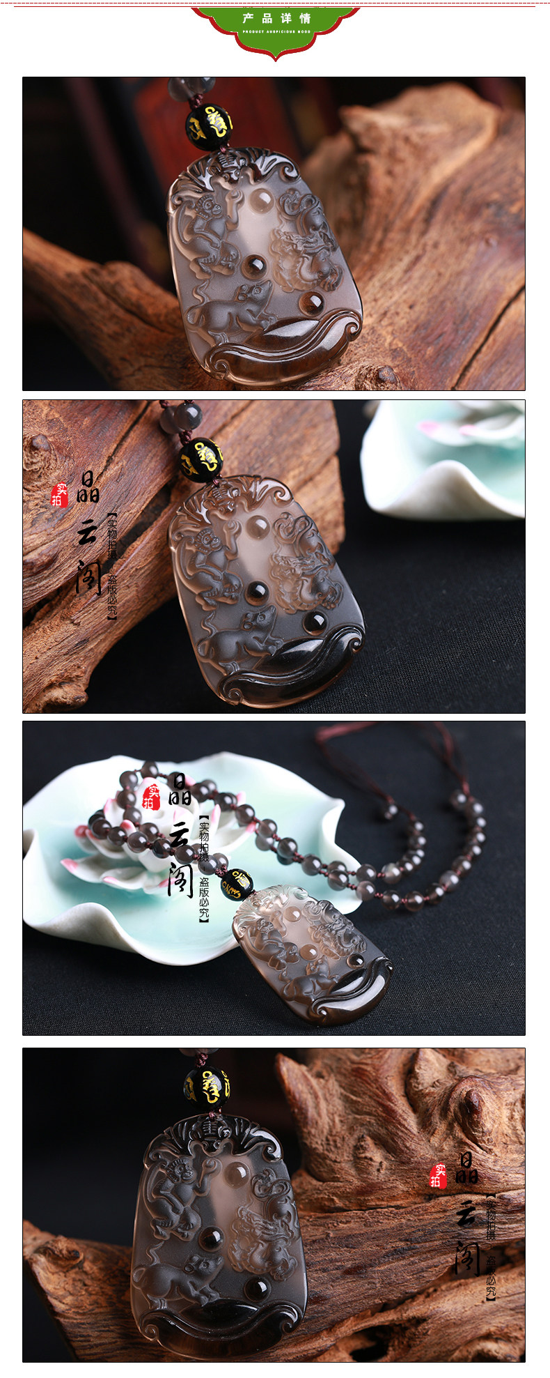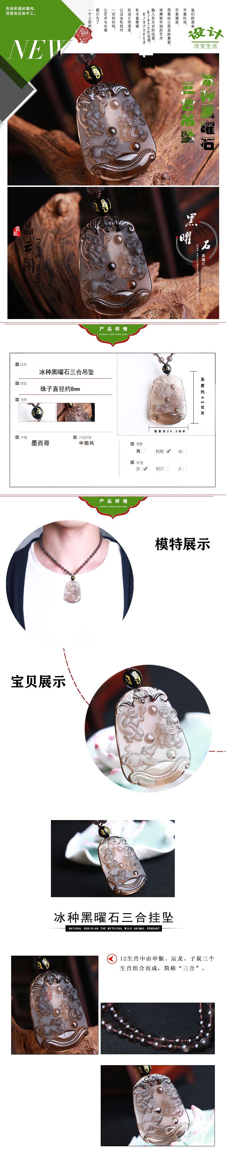 开光冰种黑曜石申子辰三合贵神吊坠鸡年属猴鼠龙项链
