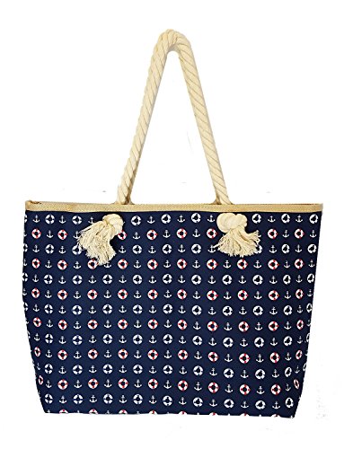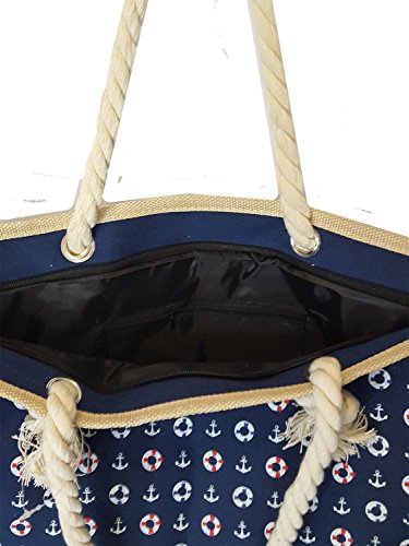 -. Feature : Nautical Themed High Fashion Printed Canvas / Double Rope Straps with 11" Drop / Zipper Top Closure / Lined with Interior Zippered Pocket / -16- x 20- x 4-