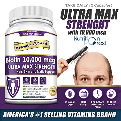 -. Title : Biotin 10,000mcg Ultra Max Strength, 90 Veggie Capsules