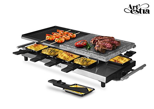 ★ Electric Raclette Grill with Cast Aluminum Reversible Grill Plate by Artestia, Serve the whole family