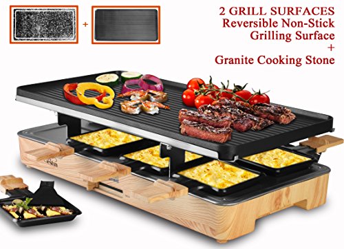 Electric Raclette Grill with Cast Aluminum Reversible Grill Plate by Artestia, Serve the whole family