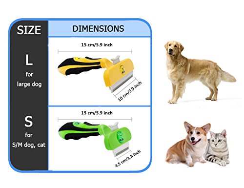 High Quality Materials Head - This handy shedding brush is made of the best quality stainless steel, non-toxic and free of corrosion or any harmful substances. The Stainless Steel deShedding edge reaches deep beneath your dog's topcoat to gently remove loose hair