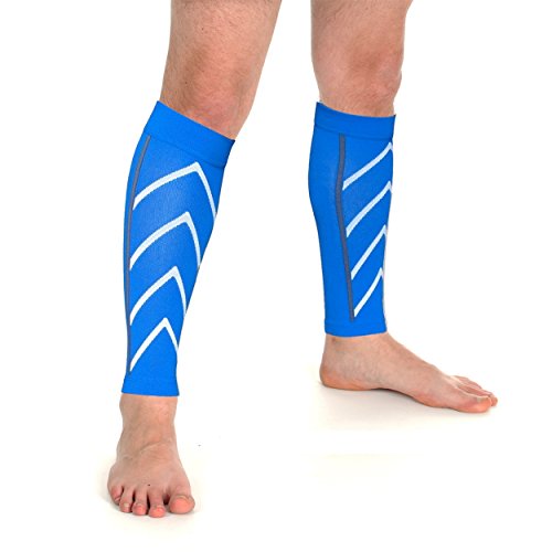 PU Health Meister Graduated 20-25mmhg Compression Running Leg Sleeves for Shin Splints, Blue, 1...