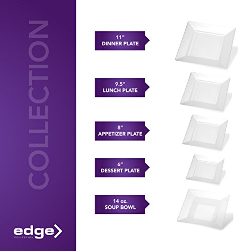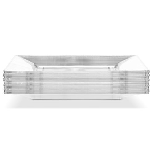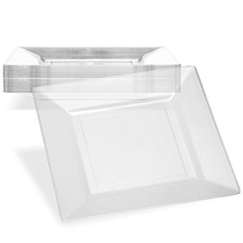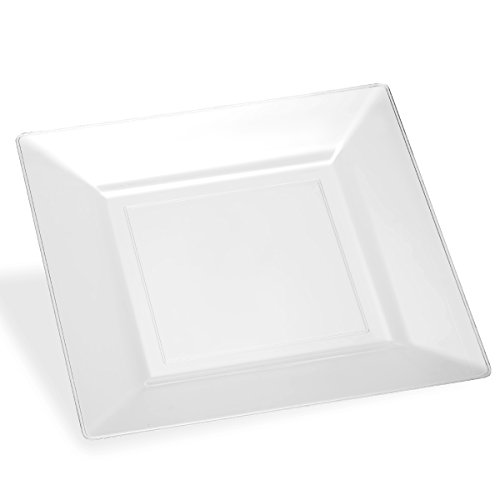 --DISPOSABLE DINNERWARE NEVER LOOKED THIS GOOD!!!!! -- Create a sophisticated presentation at your next event or special meal with this EDGE COLLECTION 11-INCH SQUARE CLEAR PLASTIC PLATE! This stylish clear dinner plate gives room for boldness and creativity to come forth in your food. Get the contemporary look of a formal setting without having tons of dishes to wash away. These plates are made of sturdy plastic if reuse is desired, and are disposable for added convenience. These party plates set a modern and classy look making them the perfect choice for big events like wedding receptions, banquets, upscale catering, reunions, or high-class dinner parties, or outdoor fun. Start planning your next event with ease and convenience. --BENEFITS AND FEATURES-- ★ Contemporary square design to set your table to perfection ★ Wow your guests and yourself alike ★ Heavyweight premium quality plastic to ensure no sagging, tearing or breaking ★ Perfect choice for wedding receptions, banquets, reunions, or high-class dinner parties ★ Great for outdoor entertaining too ★ Just toss these disposable dishes and be on your way!!! ★ Fun and Frugal?? Wash and reuse for your next event ★ Pack of 20 Edge Collection heavyweight square 11-inch dinner plates ★ Makes a great gift for people who like easy entertaining and everyday elegance Isn't life better when we get together more often? Whether a backyard barbecue or an extended family reunion, we believe in the value of spending time with friends and family. Busy lives and long to-do lists often get in the way, but when we simplify our events with beautiful disposables, we do get the time to get together. There's no better feeling. So what are you waiting for? Wow Your Guests With These Square Clear Plates, And Set The Bar At An All-Time High. #1Unique Place Setting CLICK ADD TO CART NOW!!!!! 0