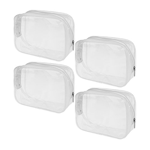 BCP 4 Pieces Waterproof Fabric PVC Transparent Plastic Zipper Bag Airline Carry On Clear Travel Toiletry Bag