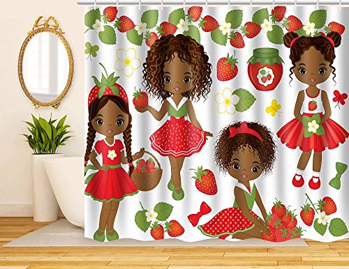 ArtRena Unique Fabric Shower Curtain, Dark Skinned, Black Girls with Strawberries, Waterproof and Mildew Resistant, 71" x 71"