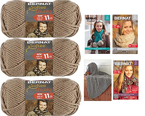 Softee Chunky Yarn Bundle with free pattern for scarves and blanket. (3pk) (Soft Taupe)