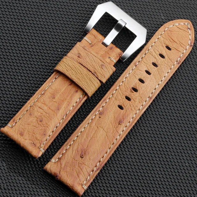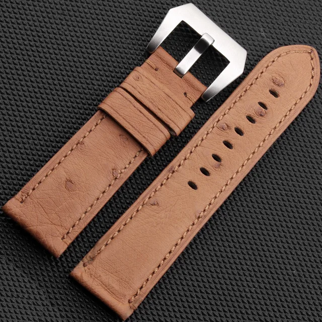 [해외]Jawoder 시계 밴드 24 미리메터 브라운/블랙/그레이/orange/라이트 브라운 타조 가죽 시계 스트랩 스테인레스 스틸 버클 팬