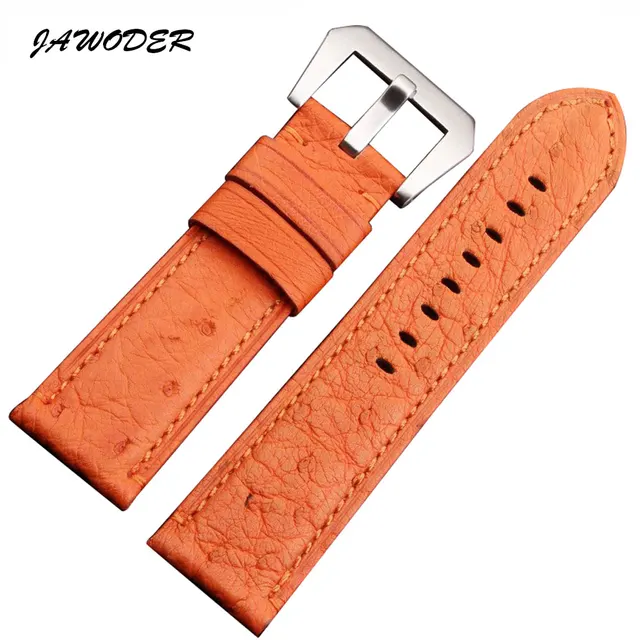 Jawoder 시계 밴드 24 미리메터 브라운/블랙/그레이/orange/라이트 브라운 타조 가죽 시계 스트랩 스테인레스 스틸 버클 팬