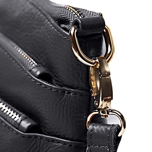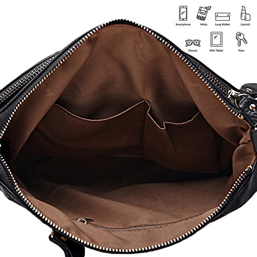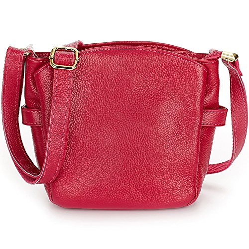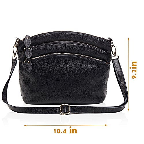 -. Feature : Made by durable cowhide leather with lichee pattern, high quality microfiber interior, brings elegant hand feeling and scratch-resistant! / Dimensions: 7.0 x 6.6 x 4.3 inches, Strap Length Appro.49 inch (Fully Adjustable); Fit all cellphone models, not compatible with tablet models / Two large side pockets + 1 big zipper pocket + specially designed interior side pockets - Whatever lipsticks, cellphone, keys, small makeups, credits cards, charger, etc, almost everything in need! / TWO-Layer Adustable leather strap with durable glossy buckle connection for easy carrying, free up your hands when going out / Creative hidden magnetic button closure, neat stitching and gliding zipper, very elegantly decorate the crossbody purse, glossy, very prime!