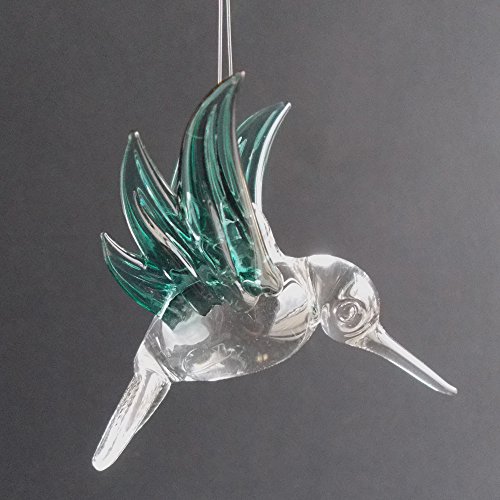 -. Title : Hand Blown Glass Hanging Hummingbird with Lake Blue Wings Ornament
