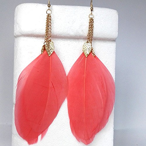 A&c Bohemia Feather Tassel Earrings for Women, Fashion Ear Drop for Girls. (Red)