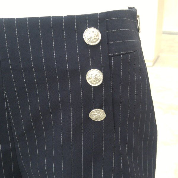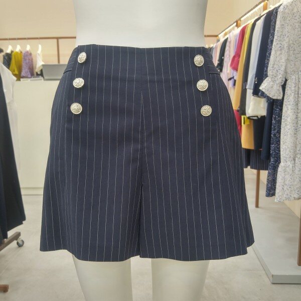 세미정장룩 반바지입니다. 시원해보이는 실버단추로 포인트를 주었으며, 살짝 퍼지는 A라인으로 부담스럽지않게 입으실 수 있습니다.