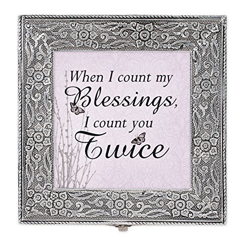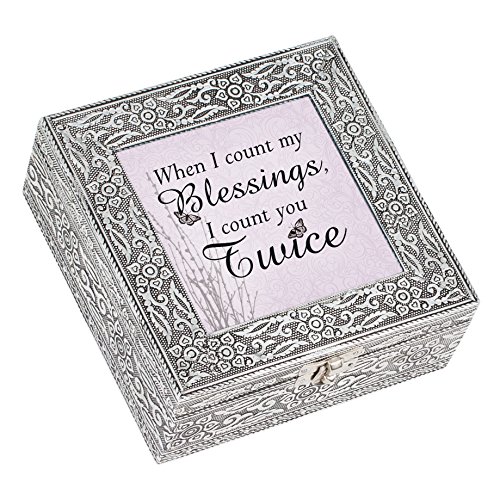I Count My Blessings You Twice Silver Stamped Metal Jewelry Music Box Plays Tune We Have a Friend in Jesus